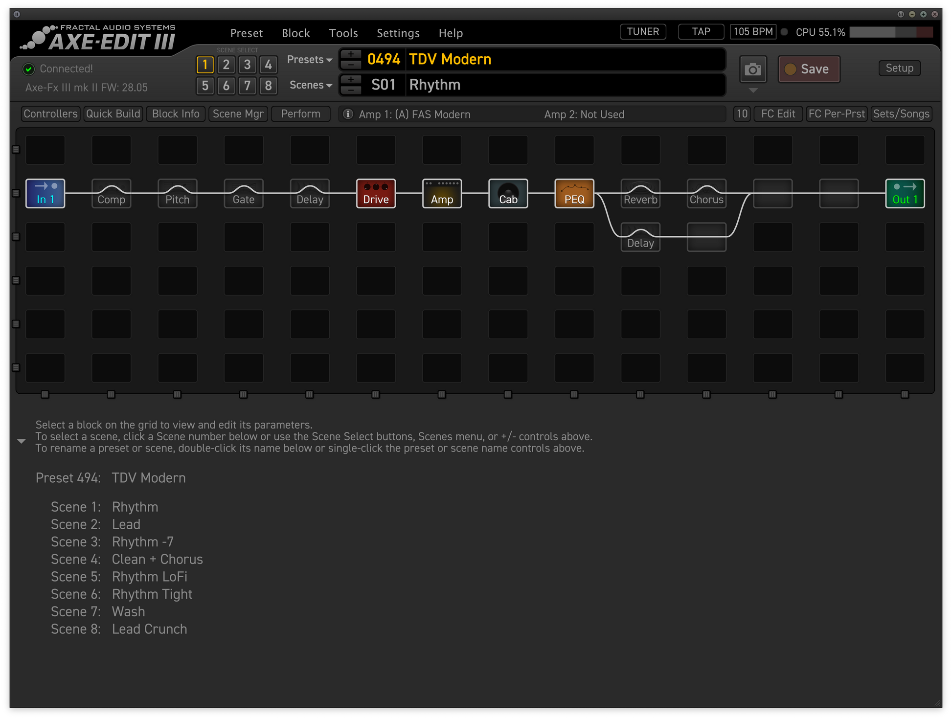 8 scenes: lead, Crunch, Clean, effects...