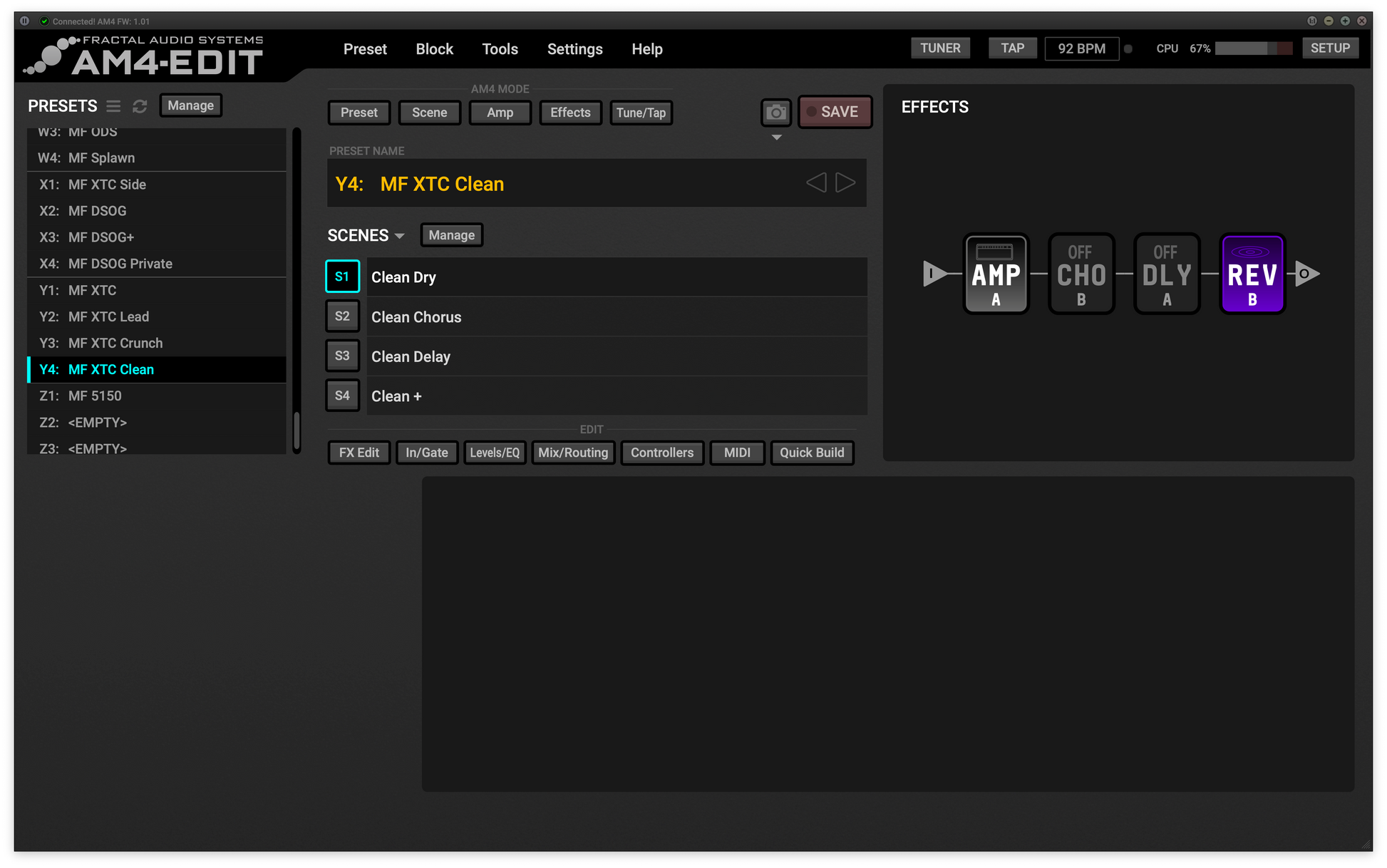 4 scenes, Clean Dry, Clean Chorus, Clean Delay, Clean+
